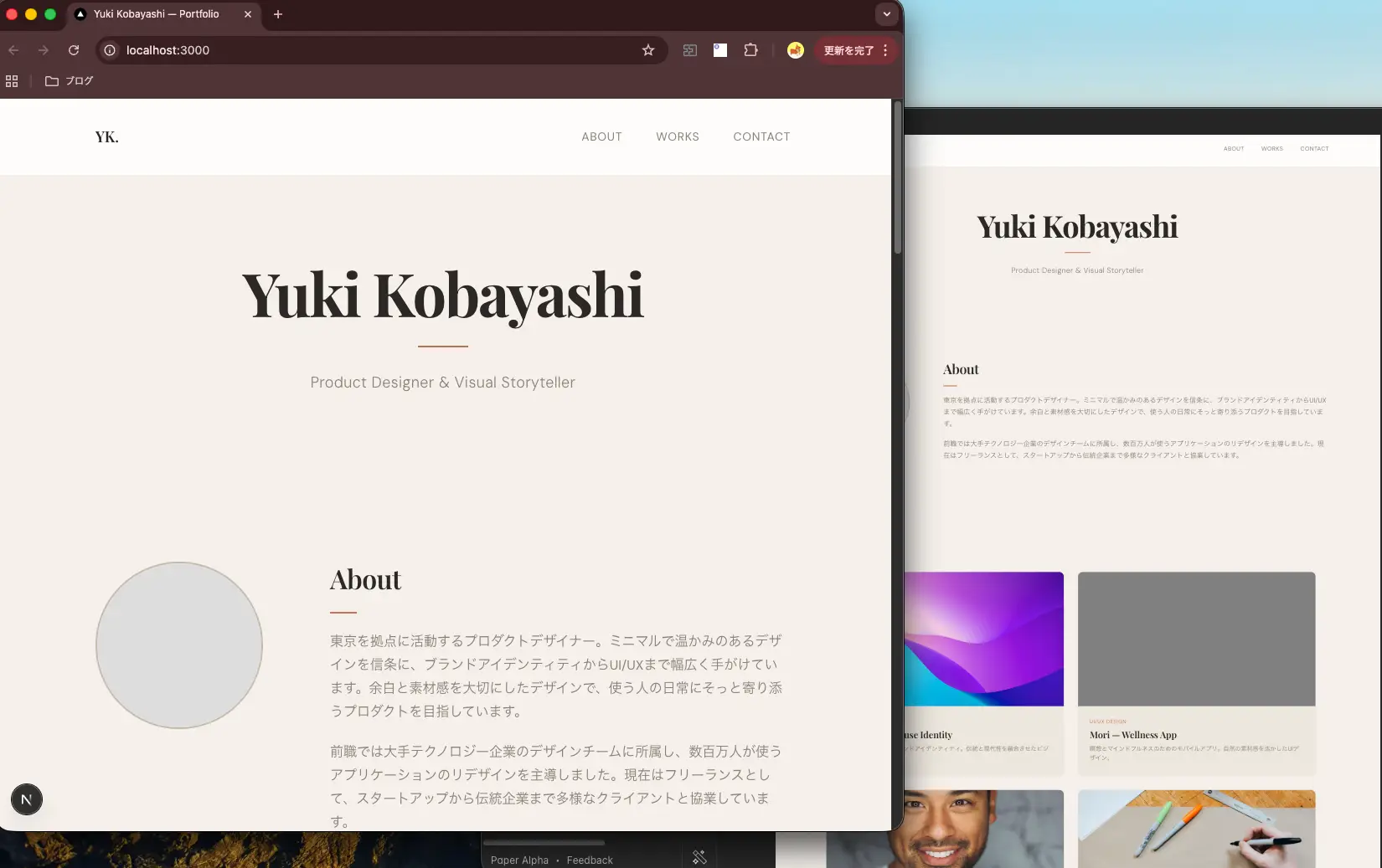 }実際にブラウザでコードを確認してみると、Paper 上のデザインと非常に近い見た目で表示されていることがわかります。