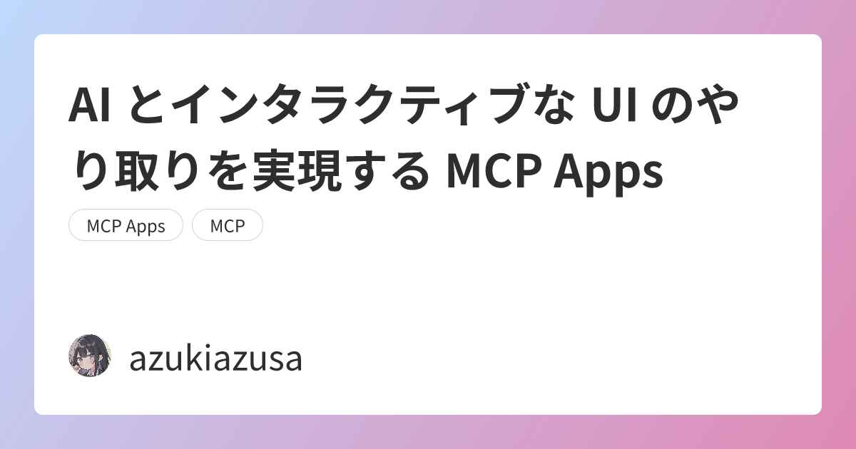 - MCP Apps は MCP にインタラクティブな UI コンポーネントを返す方法を標準化した拡張機能である
