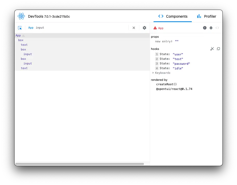 OpenTUI の React 統合は React DevTools と互換性があります。初めに react-devtools パッケージをインストールします。