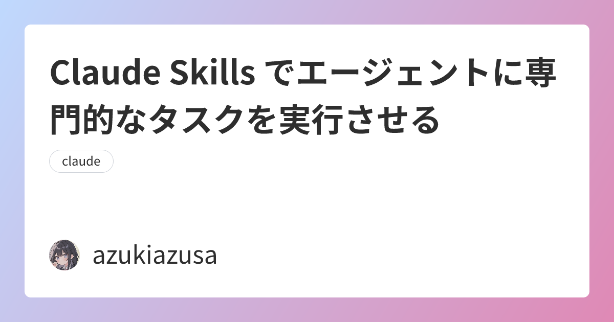 Claude Skills でエージェントに専門的なタスクを実行させる