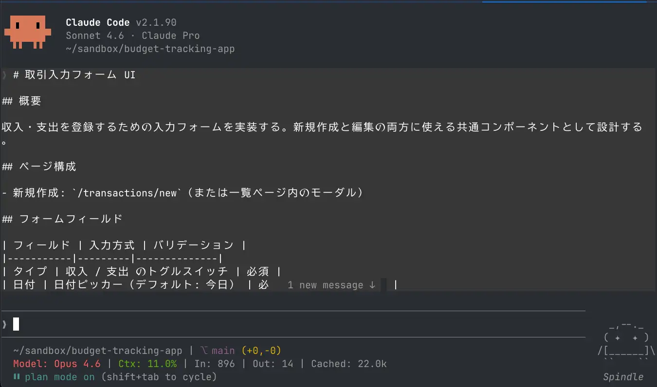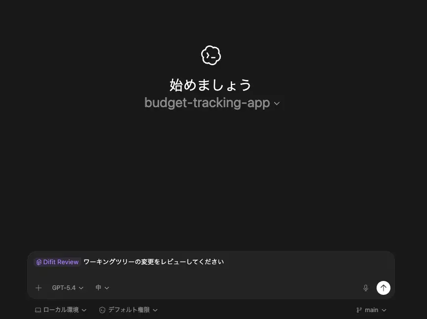 それでは実際に difit-review スキルを使用してエージェントにコードの説明をしてもらった状態で difit を起動してもらいましょう。まずは架空の家計簿アプリの UI を実装してもらいます。