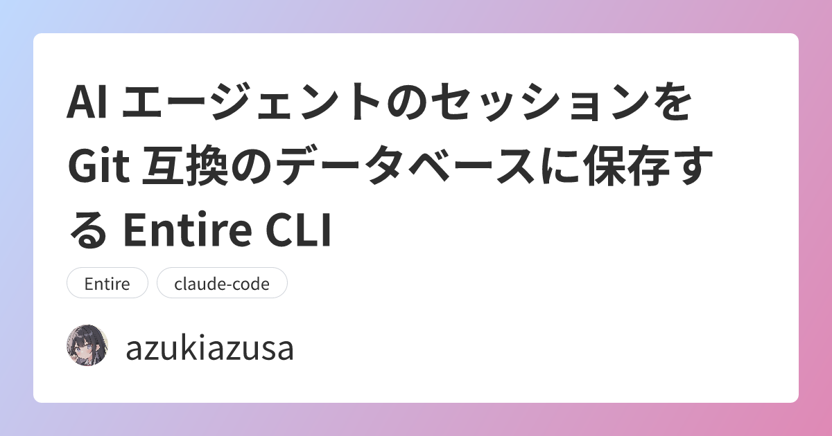 この記事では Entire CLI を実際に使用して、どのように AI エージェントのセッションを Git コミットとして保存するのかを紹介します。