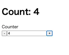 }これでスピンボタンコンポーネントが表示され、増加・減少ボタンをクリックすると count の値が更新されるようになりました。BEM 命名規則に基づいたクラス名がコンポーネントの各要素に割り当てられているため、このクラスを使用してスタイルをカスタマイズできます。.spinbutton や .spinbutton__button などのクラス名が割り当てられています。
