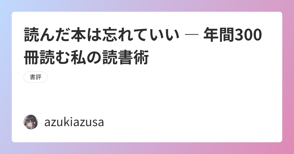 「読書した内容をどうしたら覚えられるのか?」という話題はよく議論されますが、私はあまり気にしていません。書籍「忘れる読書」では、「読んだ内容は覚えていようと思ったことはなく、むしろ忘れるために本を読んでいます。」と述べられています(この書籍の内容は忘れました!)。