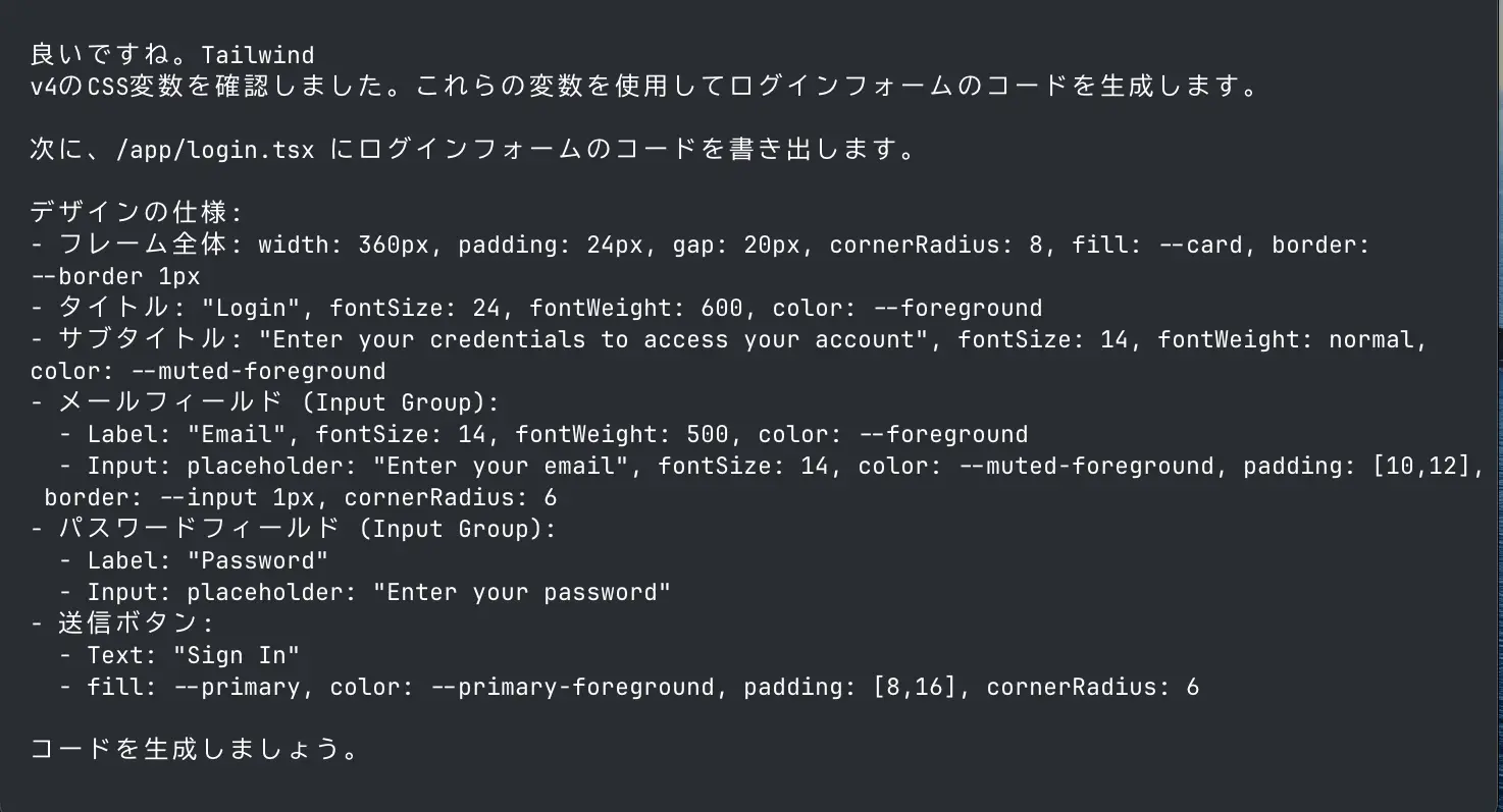 正しくデザイン仕様を解析できているようですね。この情報をもとにログインフォームを作成し始めました。