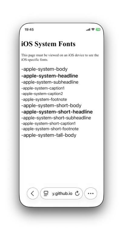 WebKit ベースのブラウザでは font-family の値として -apple-system-* を使用することで iOS で最適なフォントが選択されるようになります。これにより OS レベルのフォントの設定が動的に反映されるようになるため、ブラウザで表示されるテキストのサイズも OS のテキストサイズの変更に応じて拡大されるようになります。