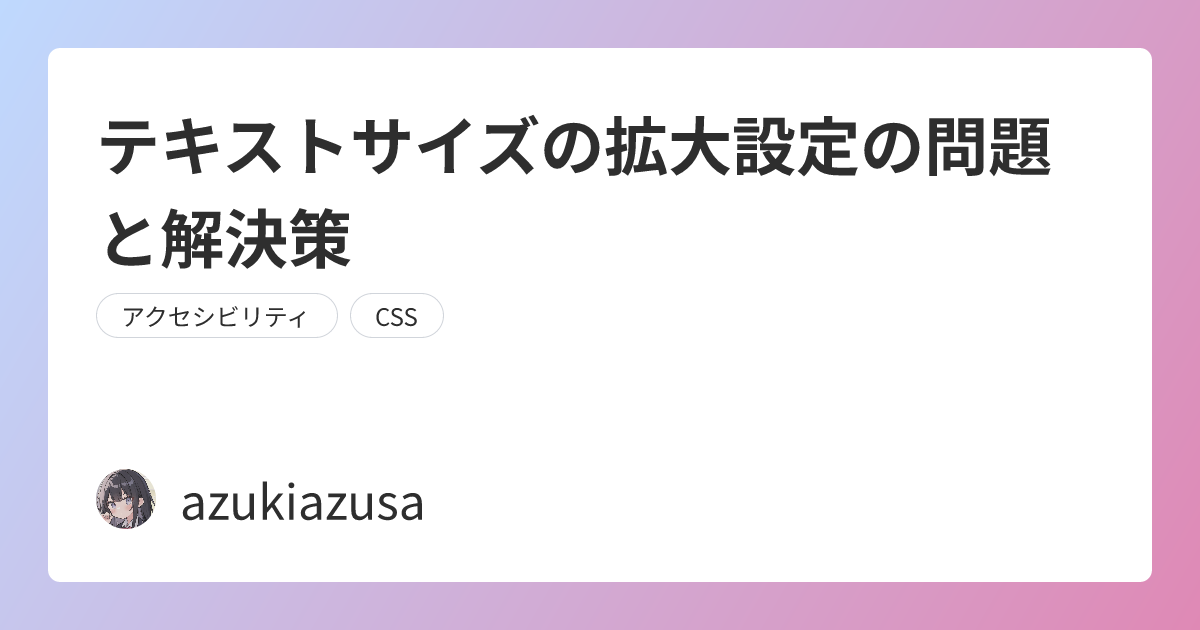 標準的なアプローチとしては、CSS の環境変数 env(preferred-text-scale) を使用する方法が提案されています。env(preferred-text-scale) はユーザーのテキストサイズの設定に基づいて拡大率を返す環境変数です。これを使用することで、ユーザーのテキストサイズの設定に応じてフォントサイズを拡大できます。