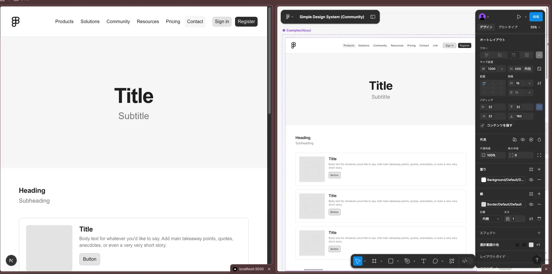 実際に Figma のデザインと Storybook 上のコンポーネントを比較してみると、再現度の高いコンポーネントが実装されていることがわかります。