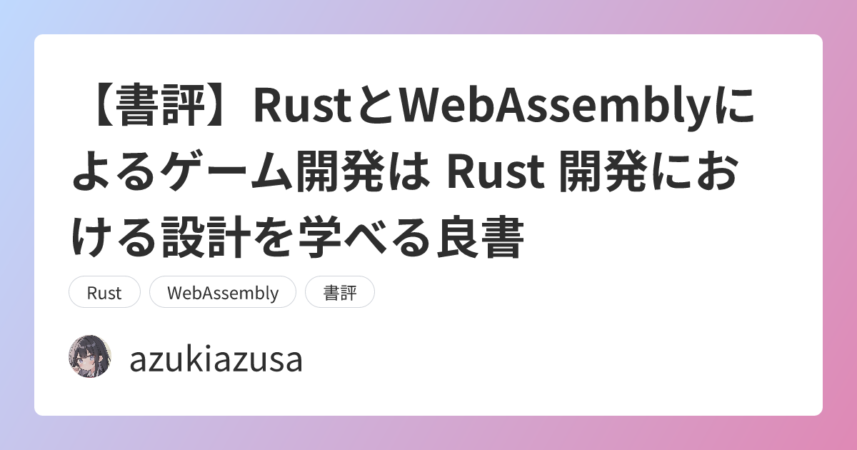 タイトルには WebAssembly とありますが、WebAssembly 自体を解説する内容なほとんどなく、Rust における開発の設計の話題が中心となっております。この本については、以前に書評記事を書いたことがありました。