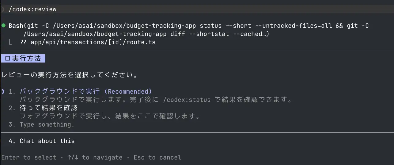 // Return the result after execution completes...Once execution finishes, the response from the Codex App Server is returned to the user as-is. This is not limited to the review command. Many commands in the plugin are implemented by connecting to the Codex App Server. In other words, the existence of the Codex App Server is what allows Codex to integrate flexibly with external services and perform a variety of tasks.