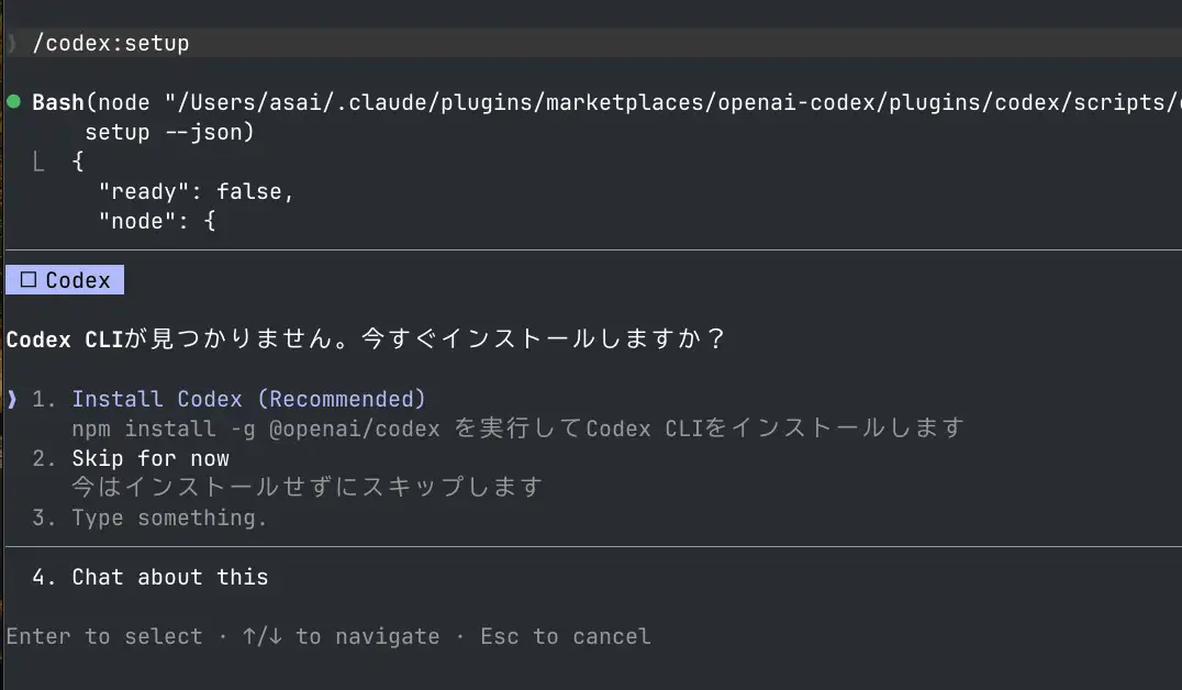When you run /codex:setup, Claude Code checks whether codex is available. If everything is fine, you'll see a message saying something like "Codex is already set up."